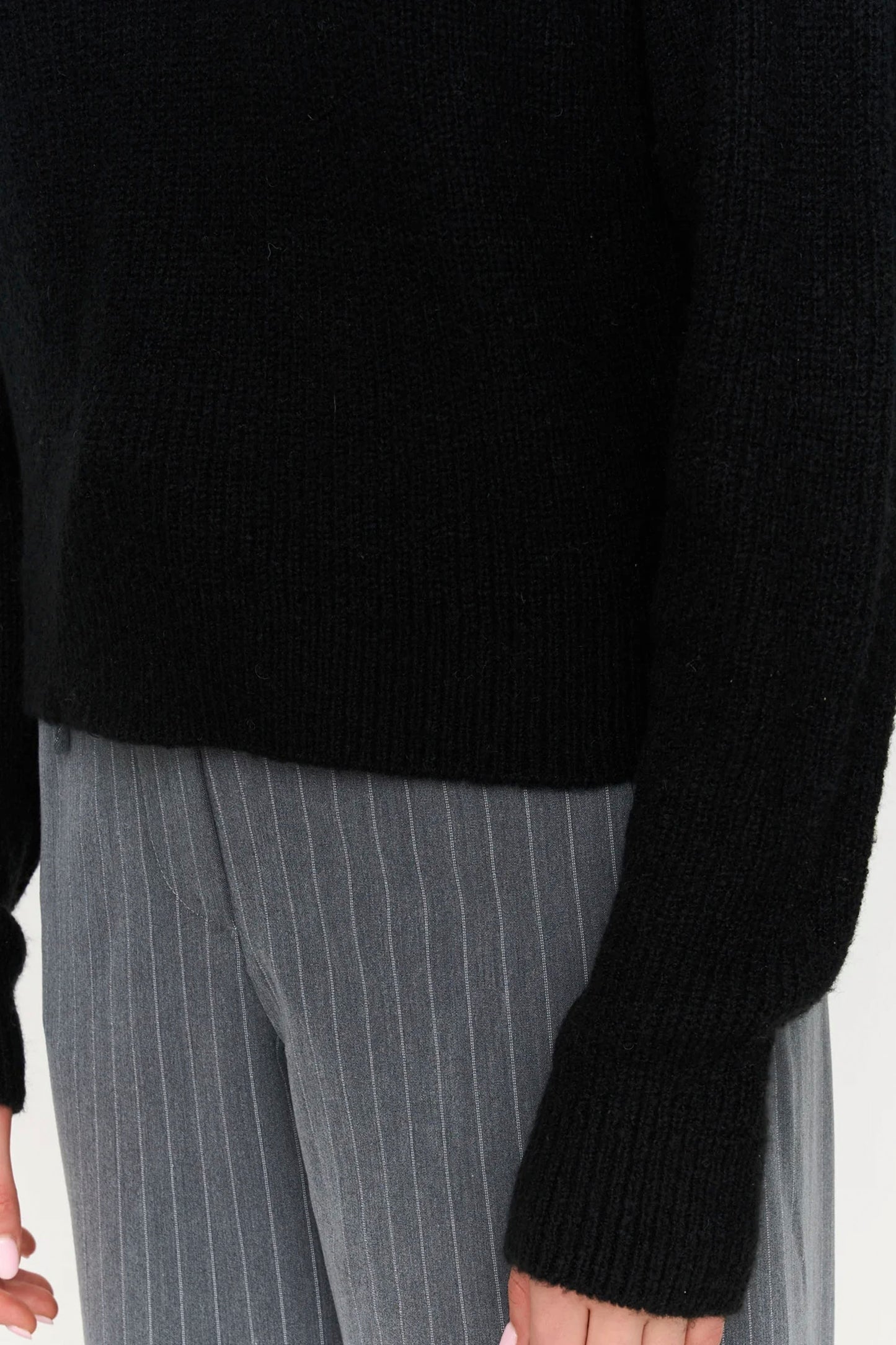 Merge minimalism and cozy ease — this oversized black sweater layers with smooth drape and subtle texture, ready to anchor your look without effort.