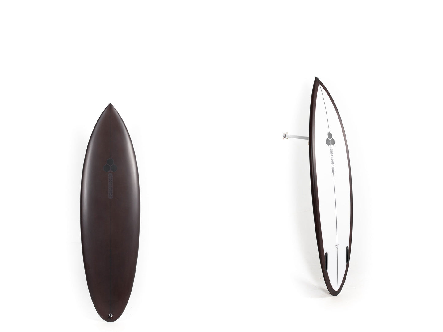 Most people ride the Twin Pin at least ⅛” thicker than their shortboard since the rails are low. Britt designed a hand foiled signature twin fin set to fit between a keel and upright fin to best perform with this CI Twin Pin providing the right balance of drive, hold and maneuverability, and flow.