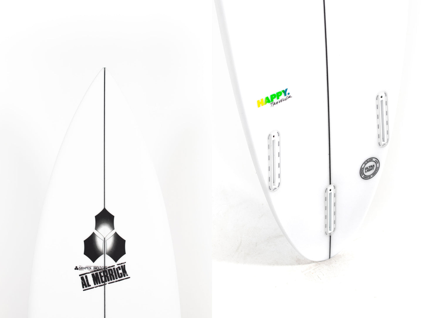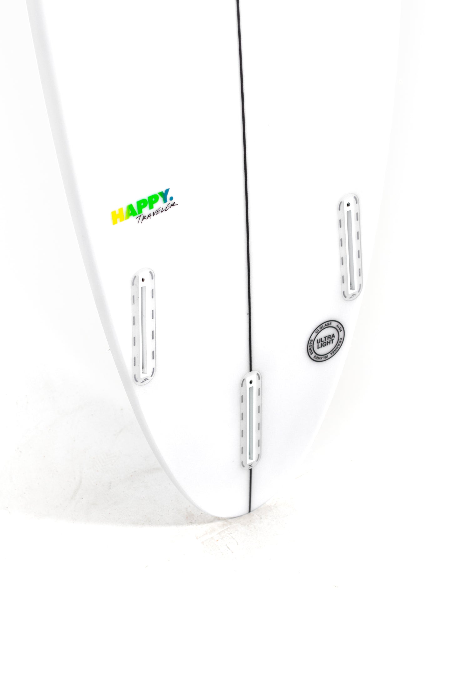 If the swell drops, the Happy rocker still gets the job done and proves this board to be the single board you need in your quiver. The Traveler comes standard with a round pin and can be set up and ridden as a thruster or quad.