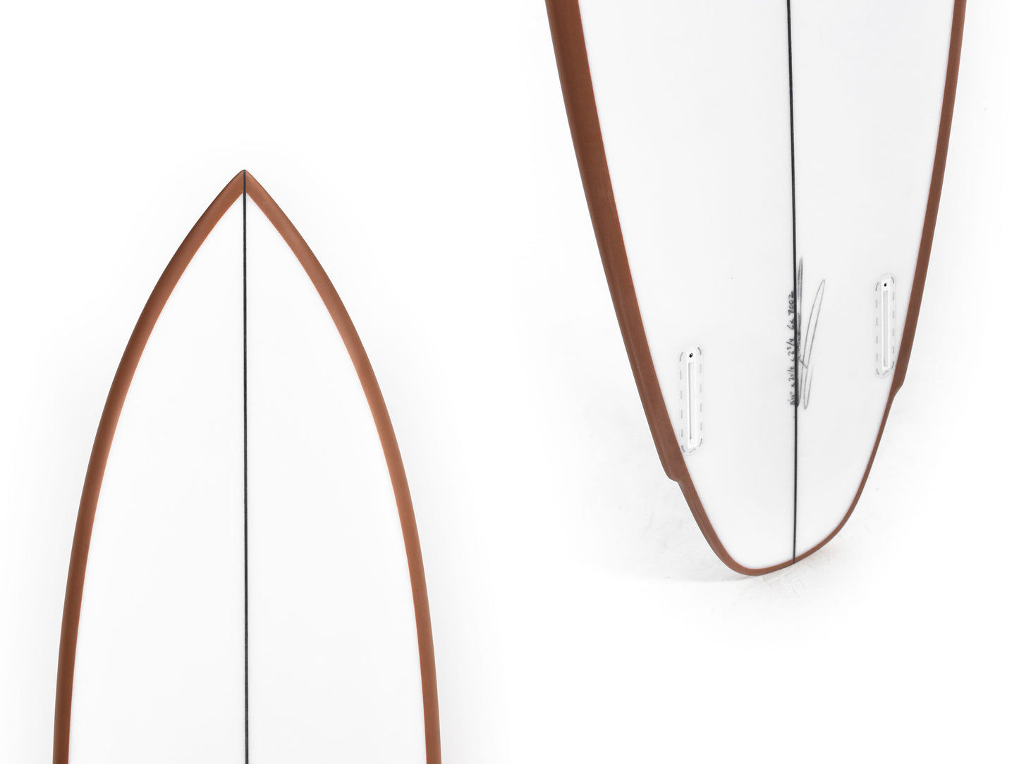 This board works better in the pocket while giving you down the line speed and drive together with the tranditional twin fin feels. He also kept the rails low for more bite and trim.