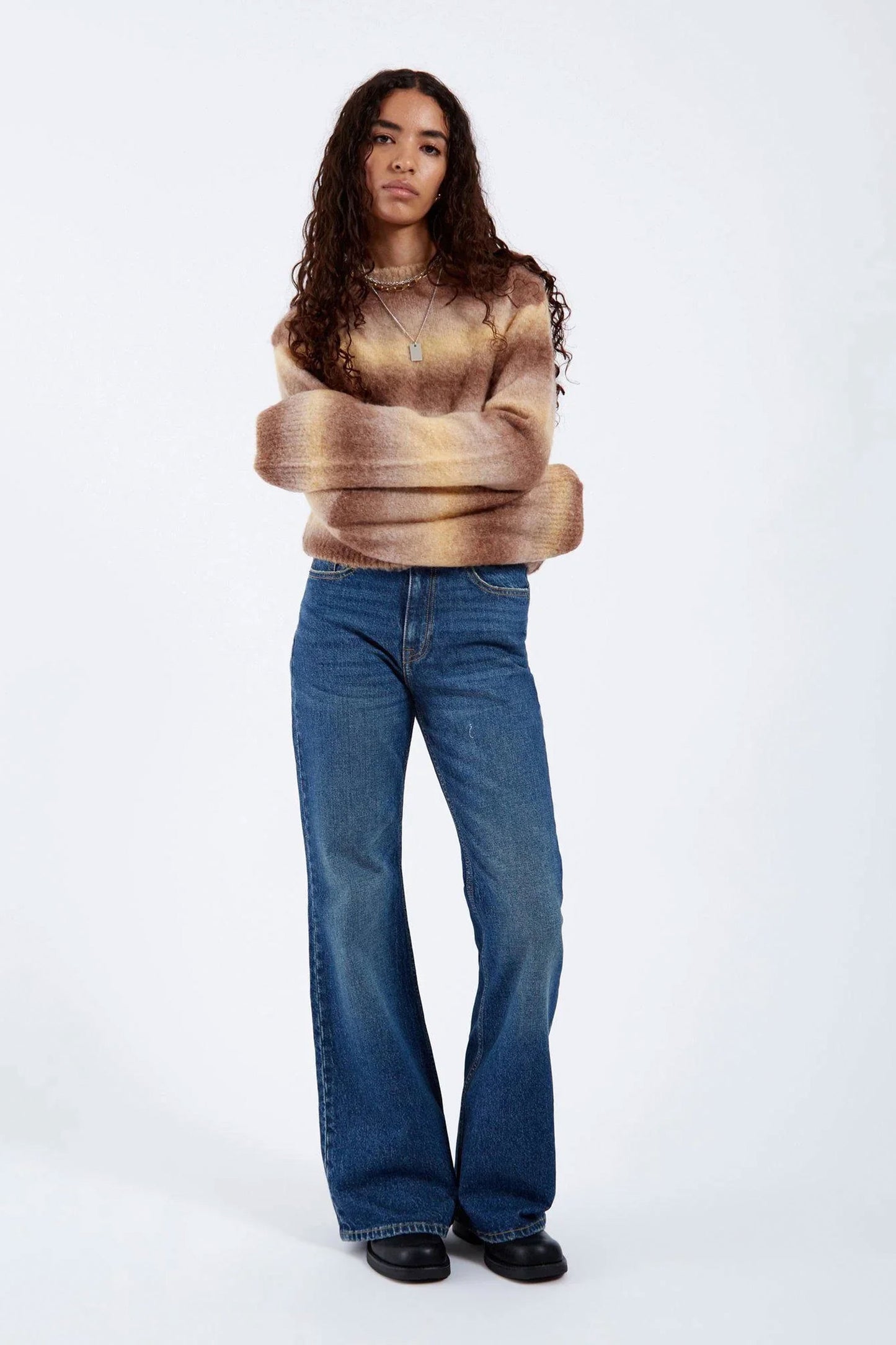 This Moira Sweater in Fade Yellow delivers a soft, lived-in aesthetic with a cozy, relaxed fit. Made from a wool blend that drapes beautifully, it features subtle fading tones and classic knit detailing—ideal for layering over basics or wearing solo on chill days.