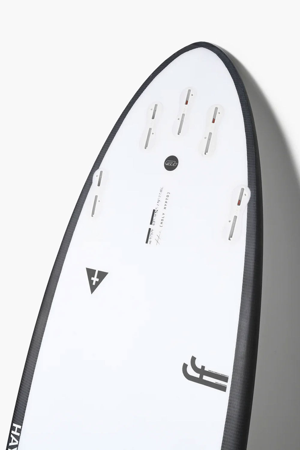 The is going to allow more performance surfing off the front end of the board, with the speed and flow of the Hypto Crypto in the tail. In the tail, the shape is an area pin tail. To suit this a more based upright fin template is going to work best. I’d recommend the Futures HS1 template. When sizing up the Holy Hypto, you want to ride this board 2 inches longer than your Hypto Krypto.