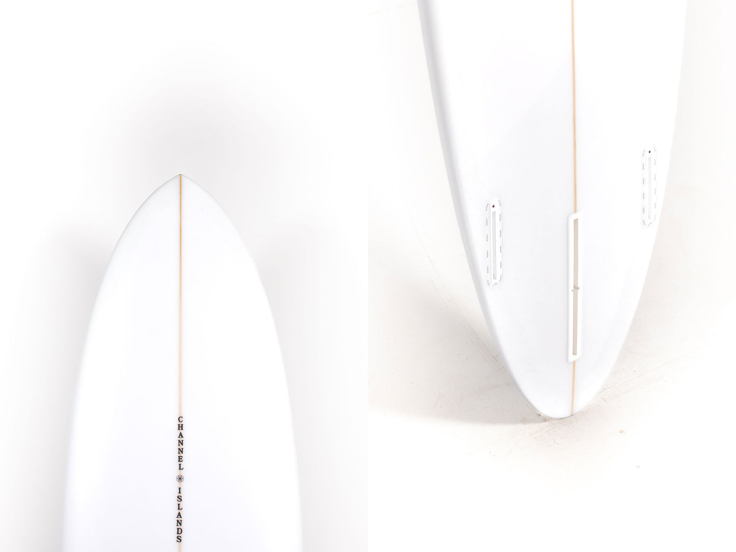 The Channel Islands CI Mid uses a 2+1 fin setup. It actually has it's own fin designed by CI. A center fin paired with smaller side bites — giving you both drive and control. Adjusting fin sizes can transform its feel from traditional glide to modern performance. It’s available in PU (classic feel) and Spine-Tek (lighter, more responsive) constructions, offering options for every preference.