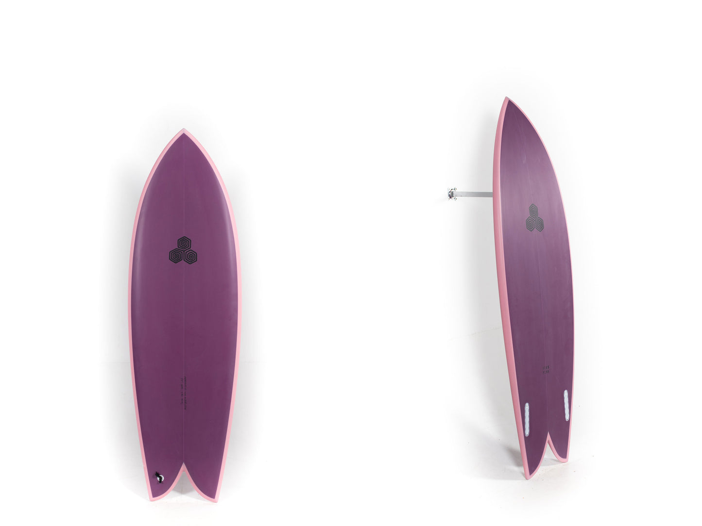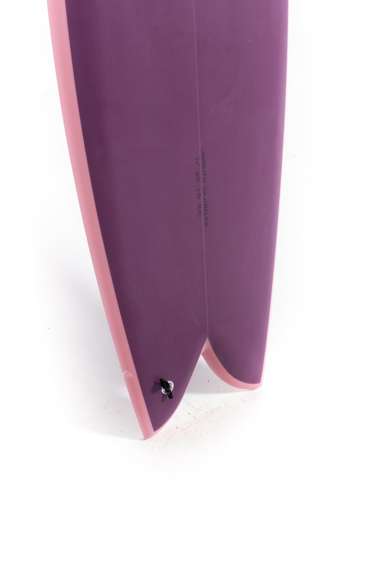 For sizing reference on the Feb's Fish, Mikey is 6'3 and 165 pounds and rides the 5'5 in stock dims. The Feb's Fish is available stock in PU with two color options and in White Spine-Tek.