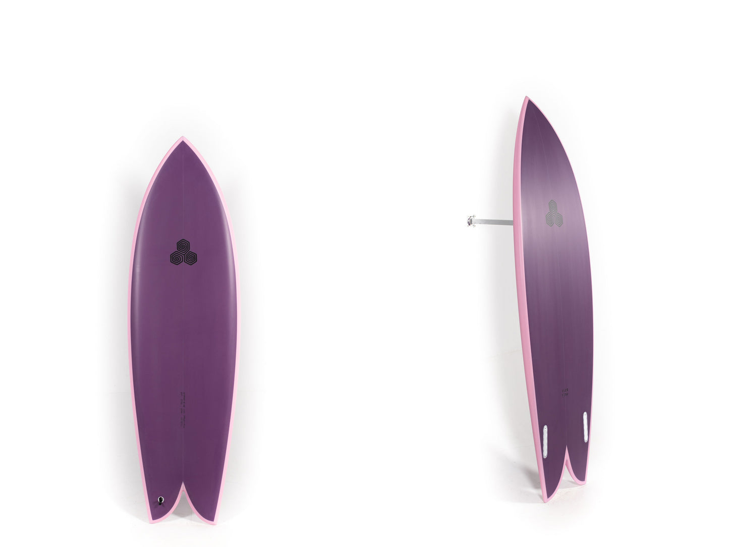 For sizing reference on the Feb's Fish, Mikey is 6'3 and 165 pounds and rides the 5'5 in stock dims. The Feb's Fish is available stock in PU with two color options and in White Spine-Tek.