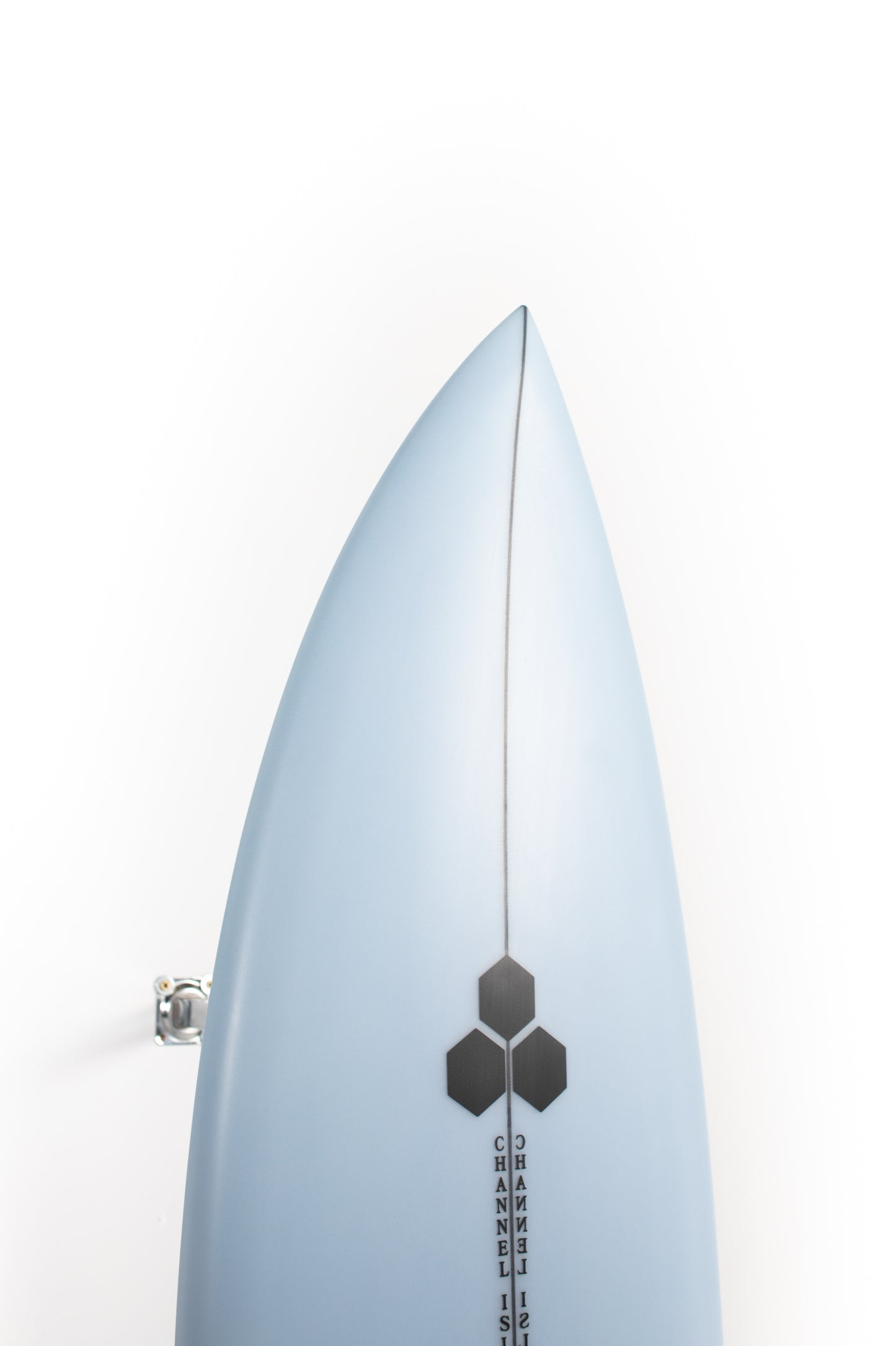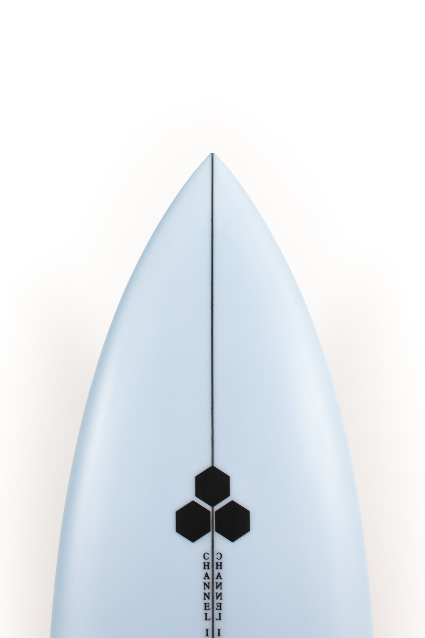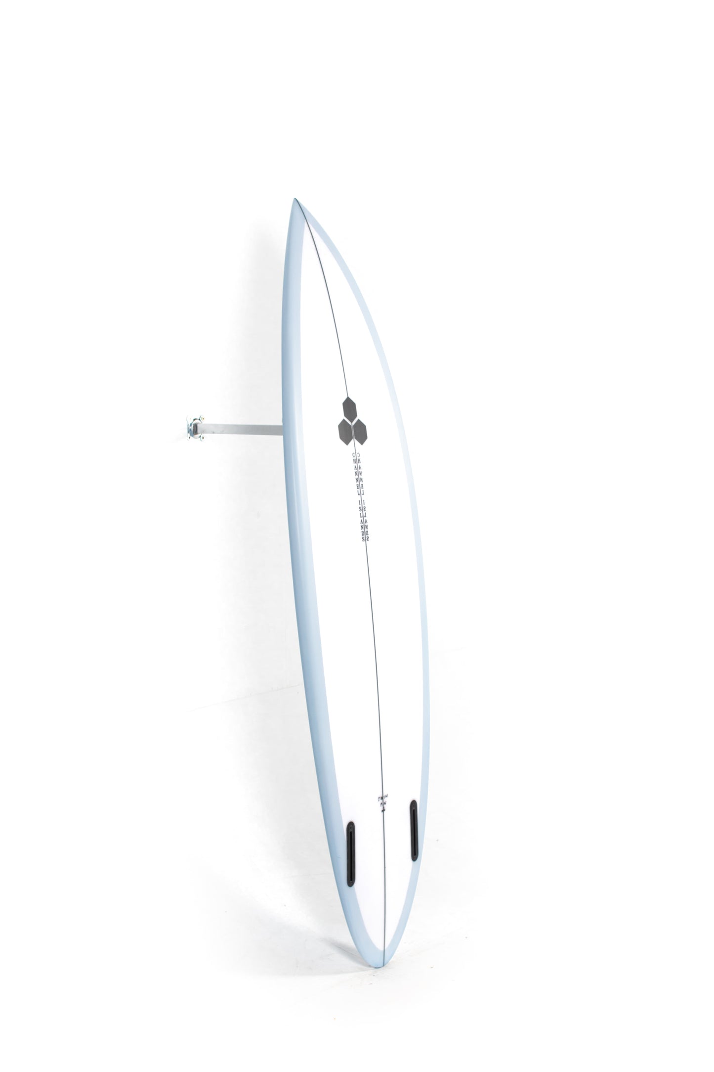 Most people ride the Twin Pin at least ⅛” thicker than their shortboard since the rails are low. Britt designed a hand foiled signature twin fin set to fit between a keel and upright fin to best perform with this CI Twin Pin providing the right balance of drive, hold and maneuverability, and flow.