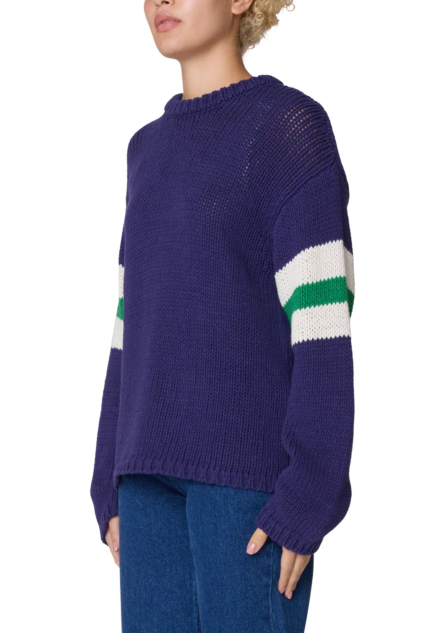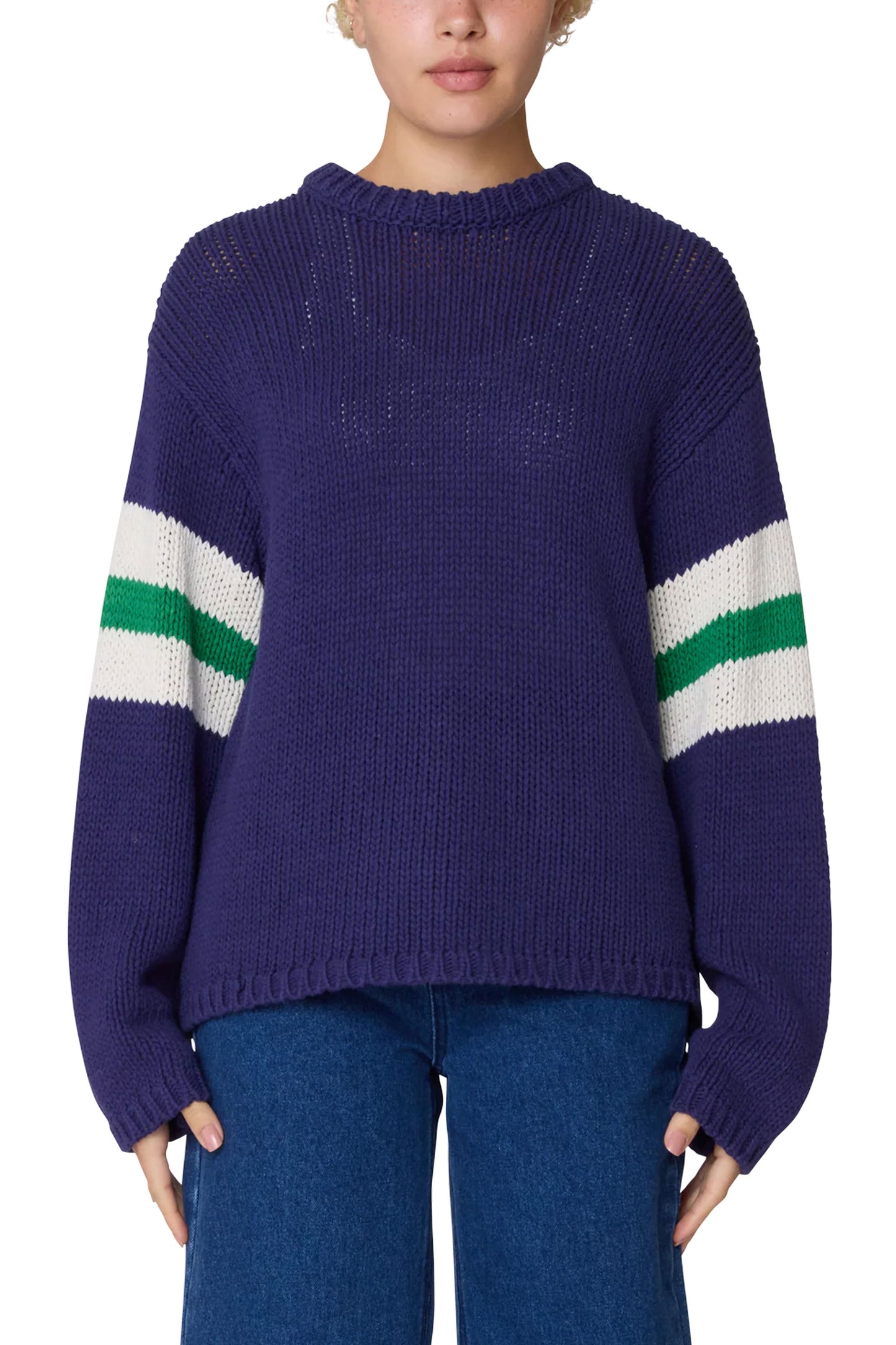 Sail through your day in cool confidence — this striped sweater layers clean lines and relaxed vibes, perfect for city strolls or weekend escapes.
