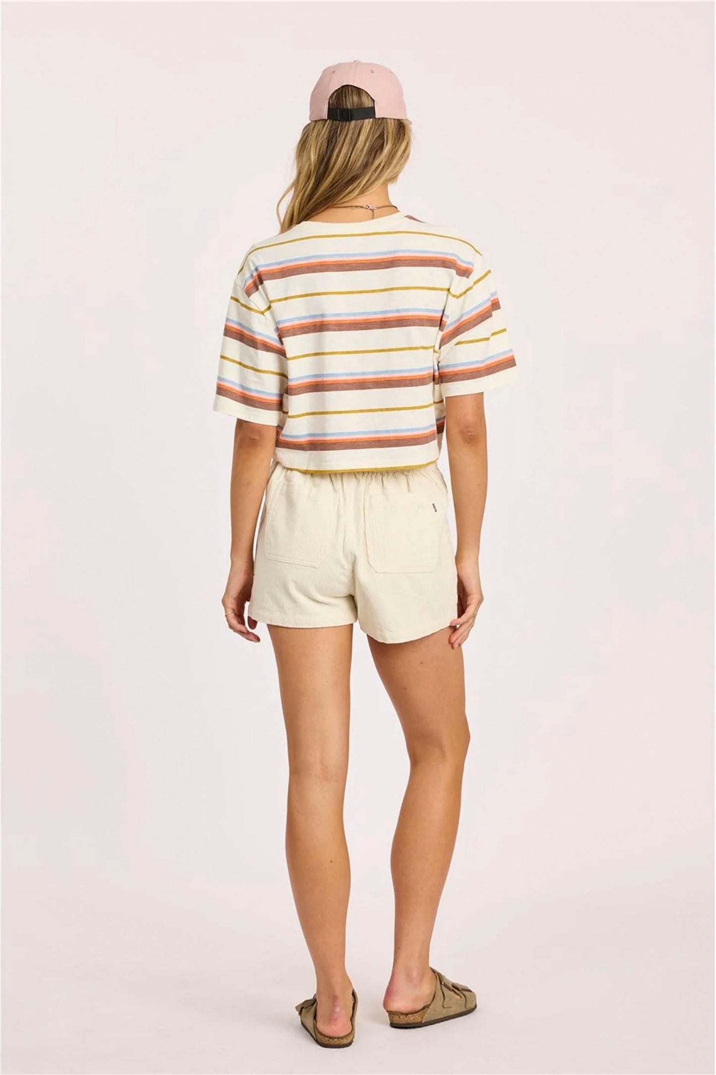 Embrace that effortless vibe with the Feeling Free Short Sleeve Knit, a cropped tee that's all about comfort meets style. The soft slub jersey knit has a relaxed, lived-in texture that feels amazing against your skin while looking intentionally cool. Classic stripes add timeless appeal and pair with literally everything in your closet—dress it up with a skirt, keep it casual with jeans, or layer it under an open shirt for extra dimension.