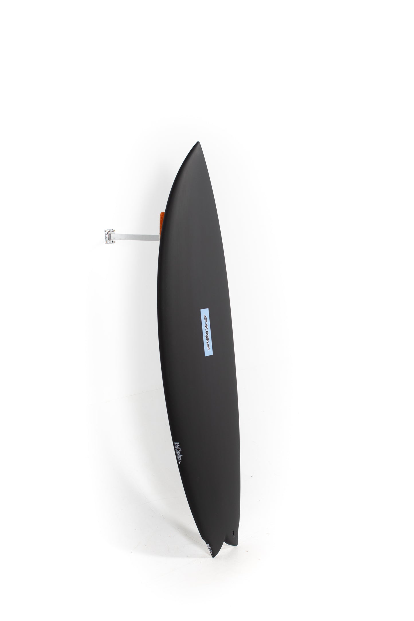 Crafted by Pukas' expert team with a focus on the twin/2+1 concept, the Mustache combines the best characteristics of a fish and a high-performance surfboard. It features a wider outline at the nose, enhancing paddling and creating a unique speed inertia. The outline transitions smoothly and narrow toward the tail and finishing with a unique wing paired with a "Mustache swallow" tail. This setup improves rail engagement and allows for sharper vertical manoeuvres.