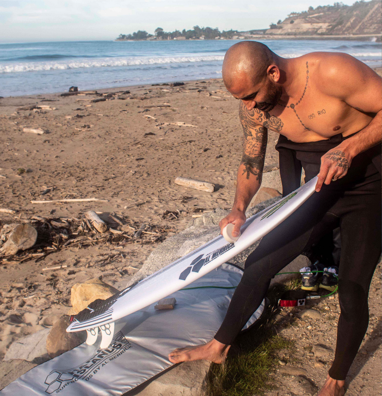 Bobby Martinez challenged Channel Islands to build him as short of a board as possible with the goal of maximizing his fun in Santa Barbara’s tiny summer surf. He also added that it had to be a quad, and it still had to live up to his high-performance standards. Bobby’s shortboards are 5’8” but for this customized four-finner he was thinking we ought to take it down to 5’2”.