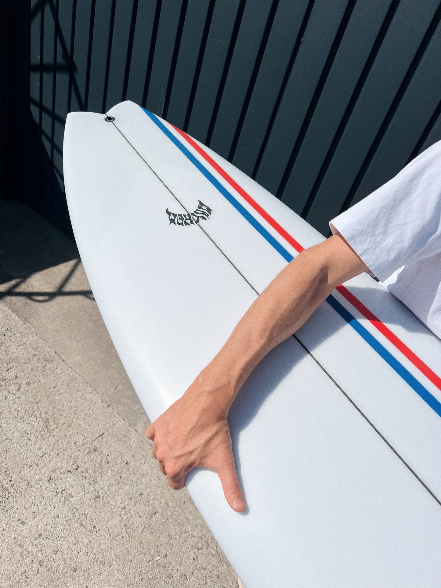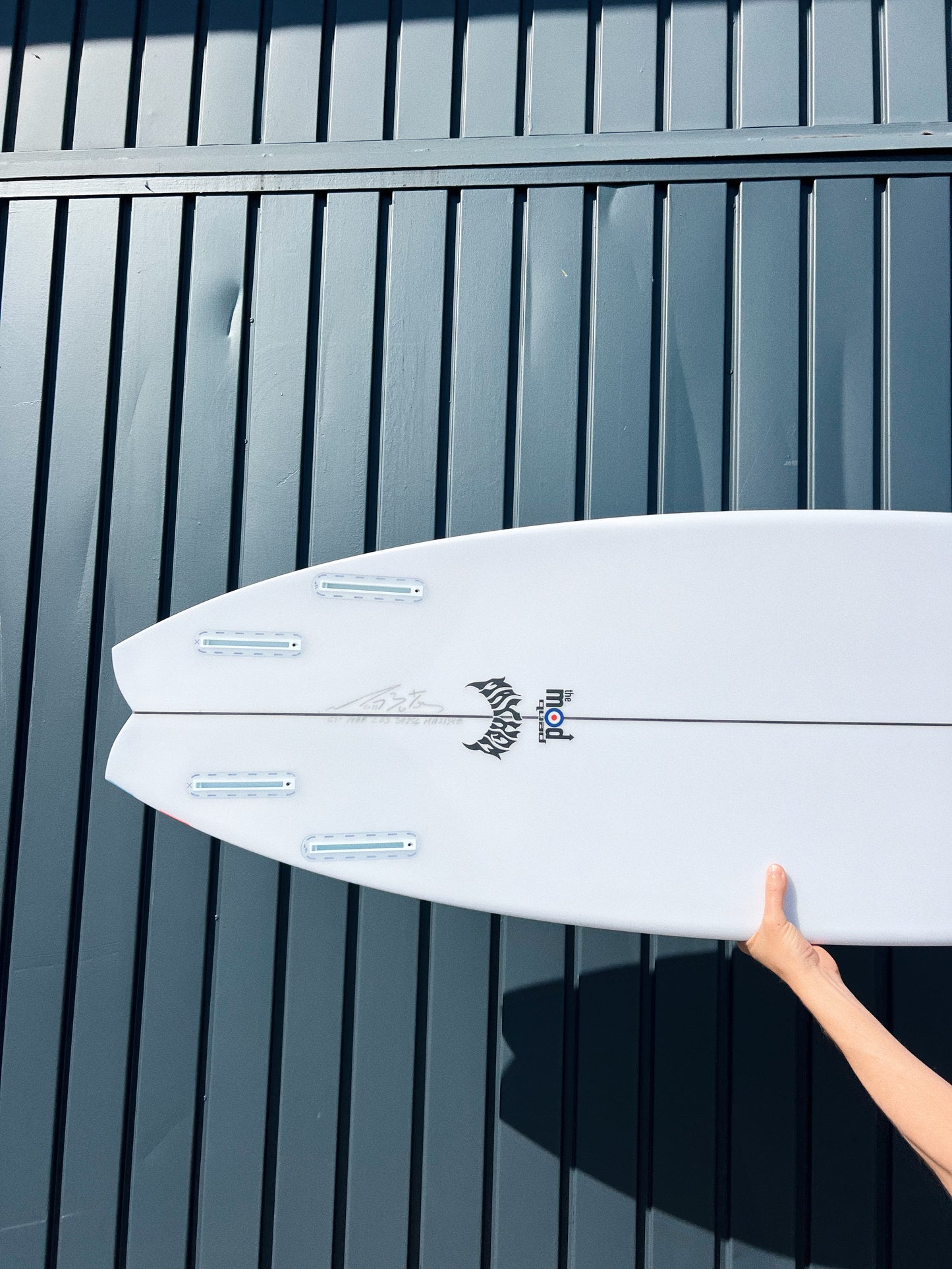 Lost's been building unique little hybrid quads for Shane Beschen and Pops Ho, over in Hawaii, for years now. They love ‘em in typical punchy hot dog days, on the NorthShore, but we never really had many requests or demand to elaborate on them. Starting with those boards, but with smaller, softer, California and East Coast surf in mind, Matt went to work. The Mod Quad has a low overall curve, with a fast entry and a drivey tail rocker. It features an almost exaggerated rail line rocker, that creates a deep single concave, between the feet and hyper-extends through the tail, ending in a noticeable Vee, behind the rear fin. Low rocker for speed, concave for lift, curvey rail line for turning and the Vee out the back, which acts like a rear fin, guiding and holding in through turns. A generally wide and skatey performance outline, with full, forgiving nose and a wide point set back, creates hip in the tail that swoops into a moderate swallow. The swallow reduces a bit of surface area, lends some grip and pivot, while still retaining width, for speed in smaller everyday surf.
