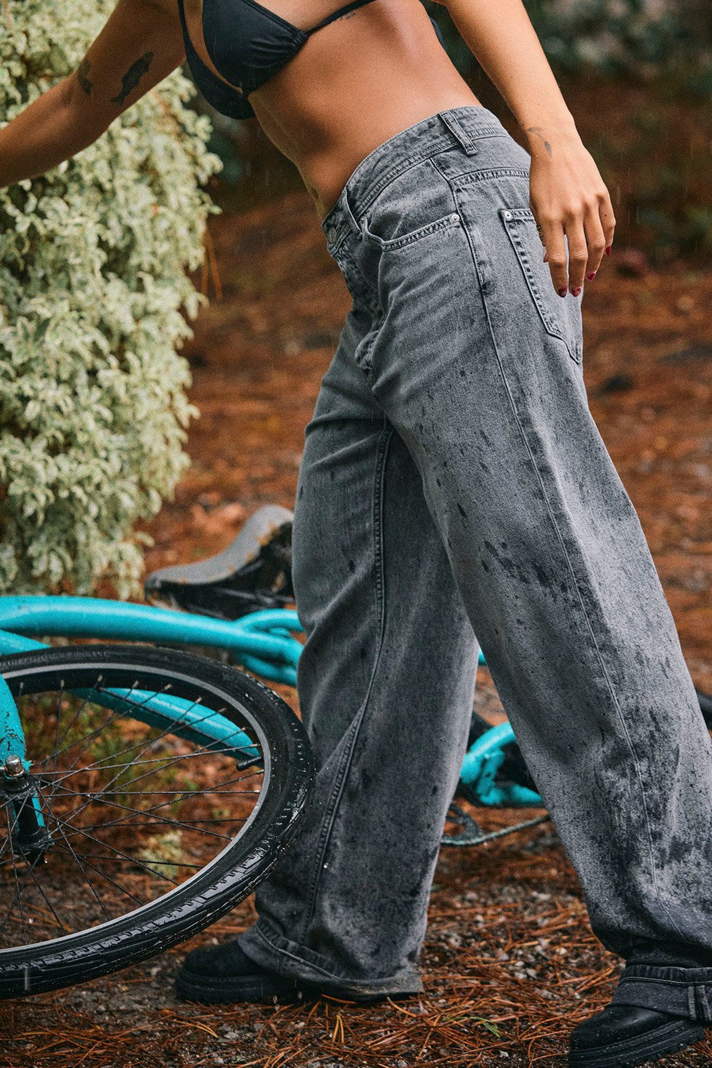 Crafted from 100% organic cotton stretch denim, this mid-rise wide-leg jean features a relaxed silhouette that sits snug at the hips and thighs before flowing freely through the legs. With classic five-pocket styling, a metal rivet button and zip fly, the Mid Grey tone delivers versatile, laid-back elegance for day-to-evening wear.