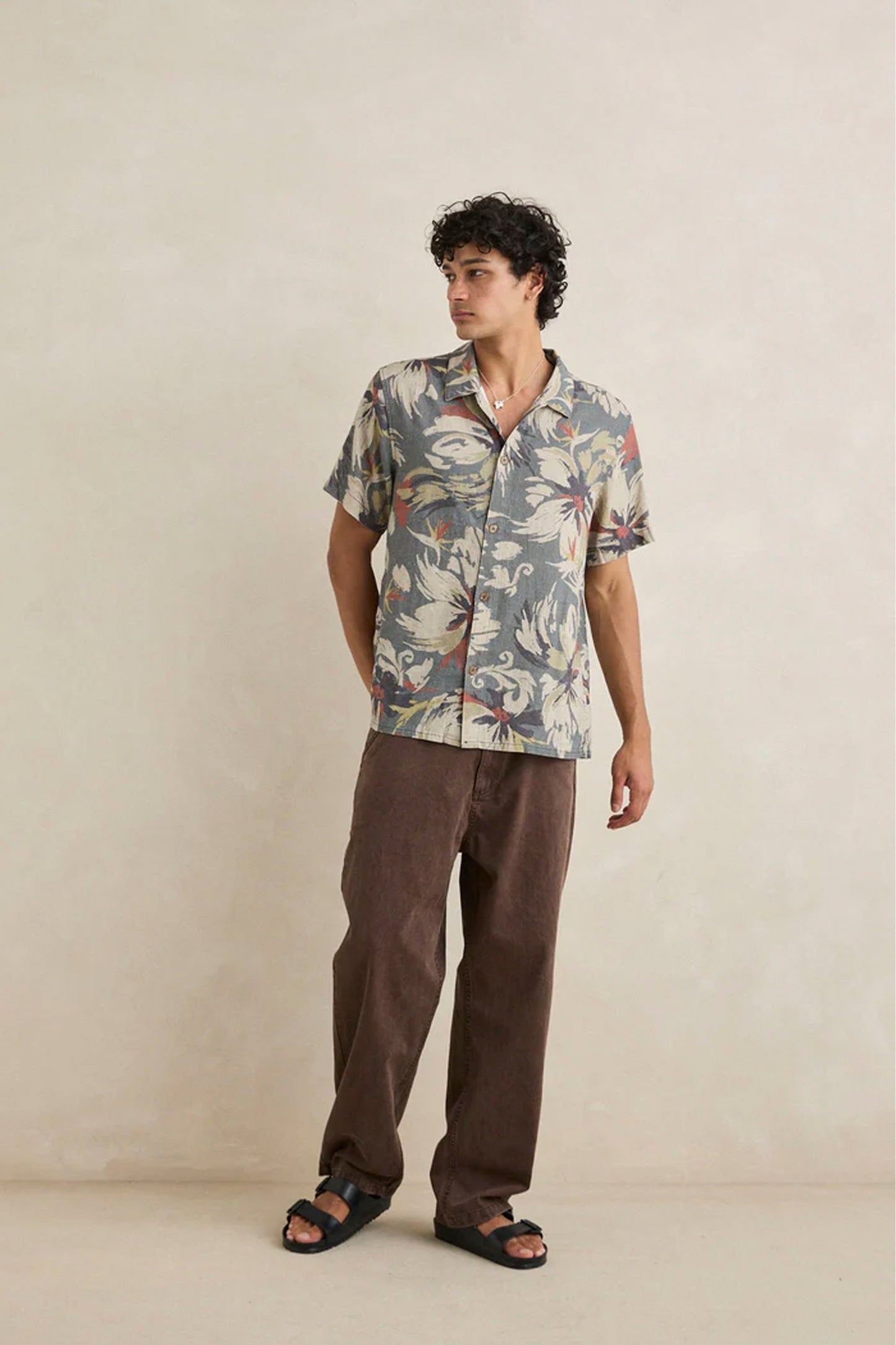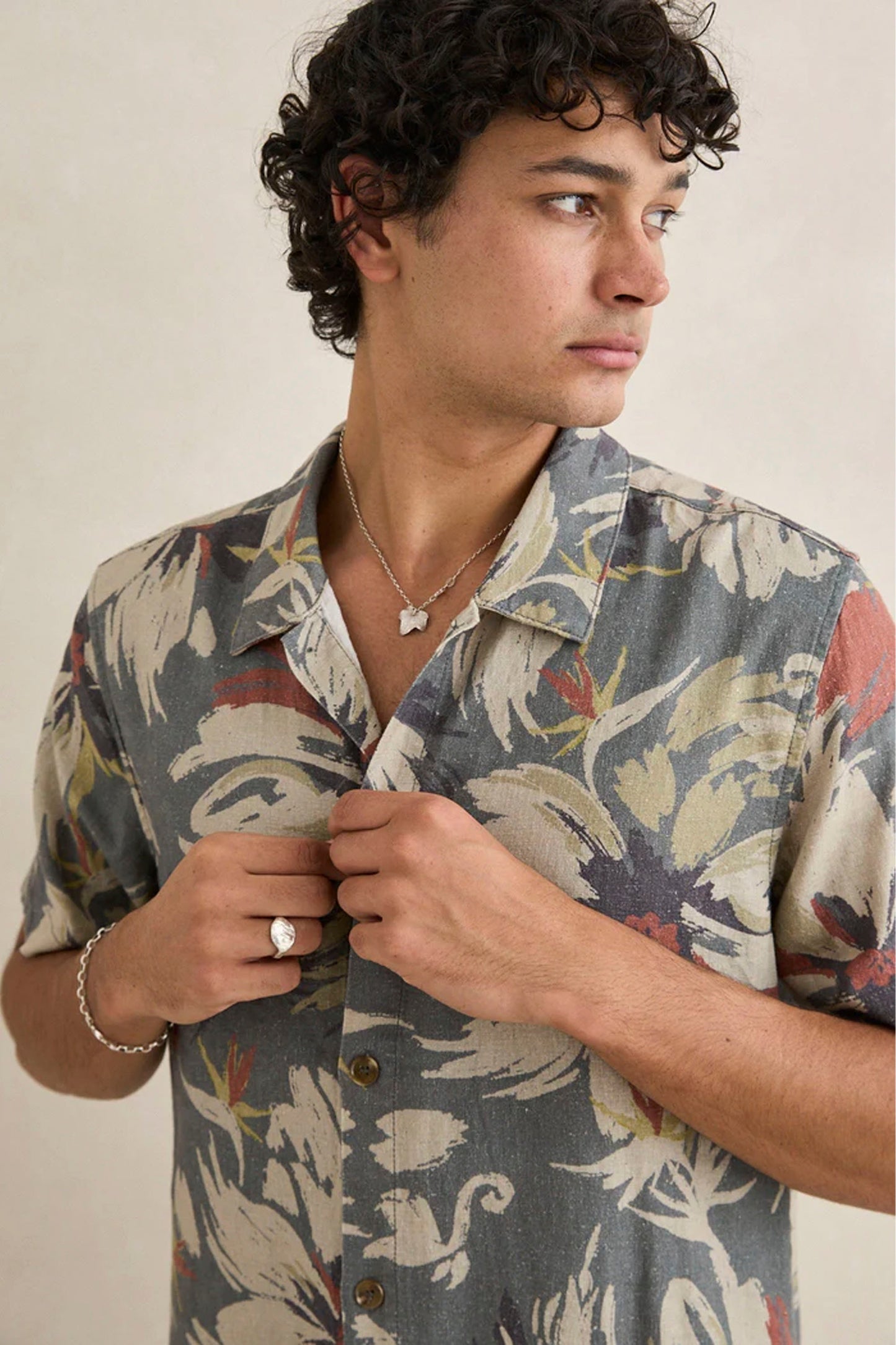 Designed for those who live between the ocean and the city, this linen-rayon blend shirt brings laid-back sophistication to your everyday rotation. The subtle tropical camo print adds character without overpowering, while the washed finish ensures it feels broken-in from day one.