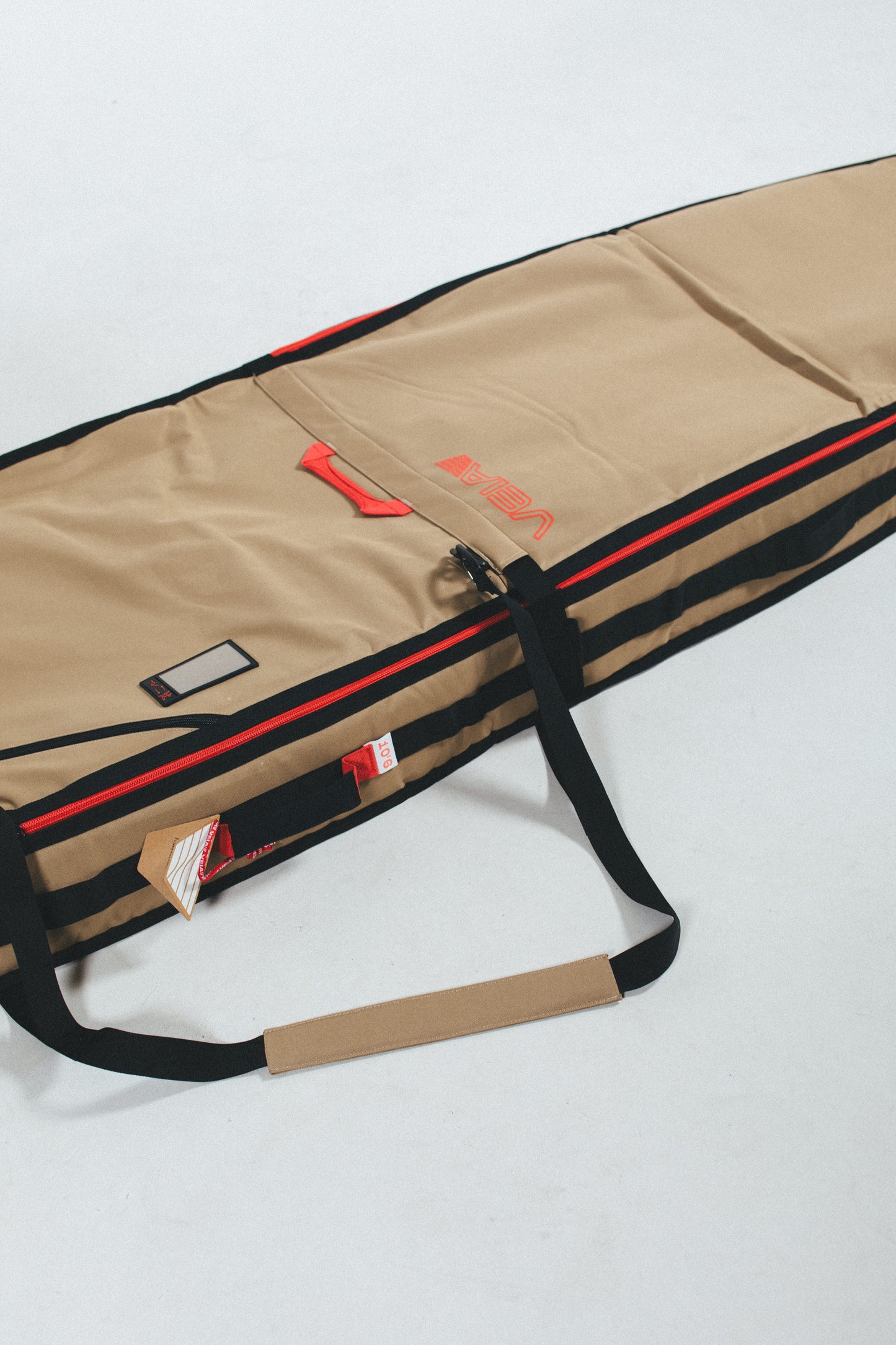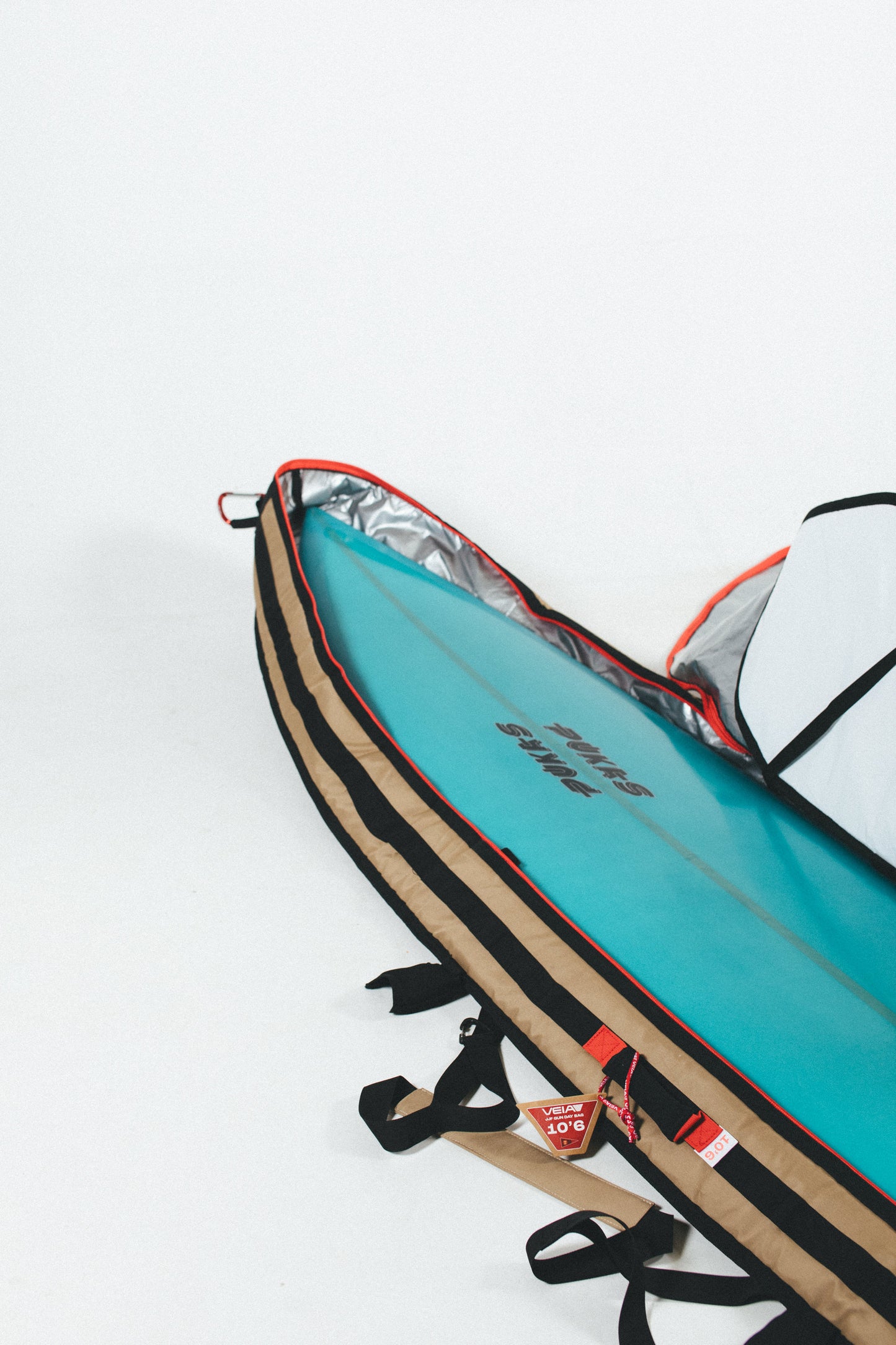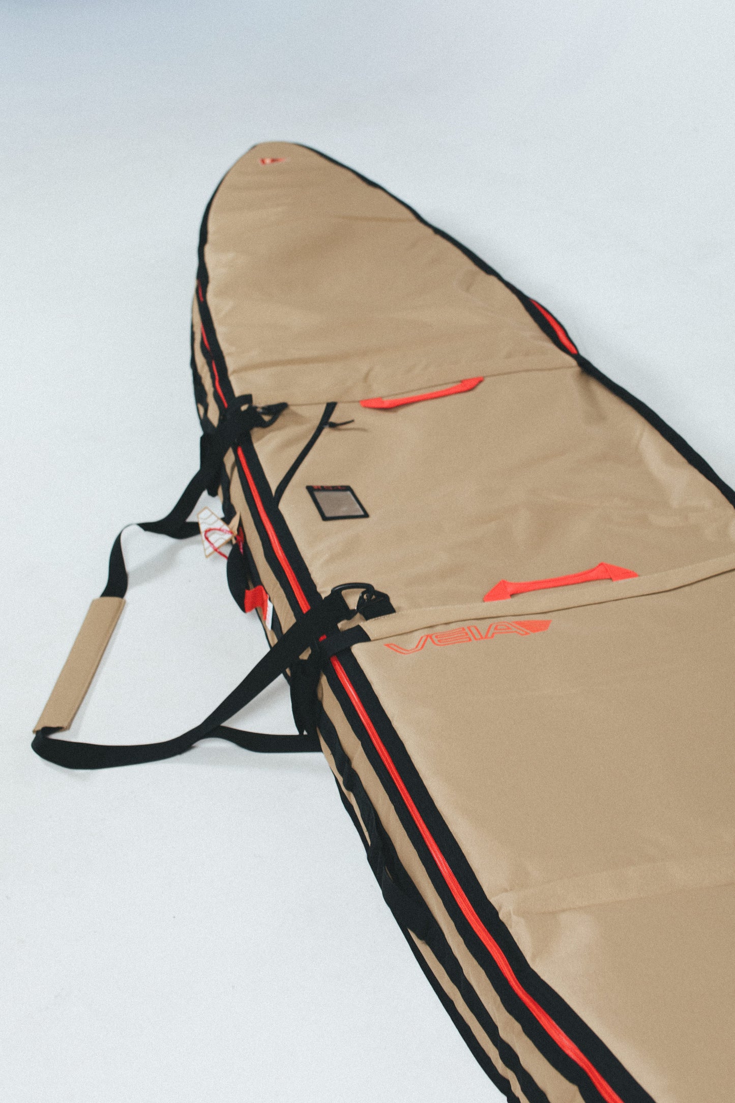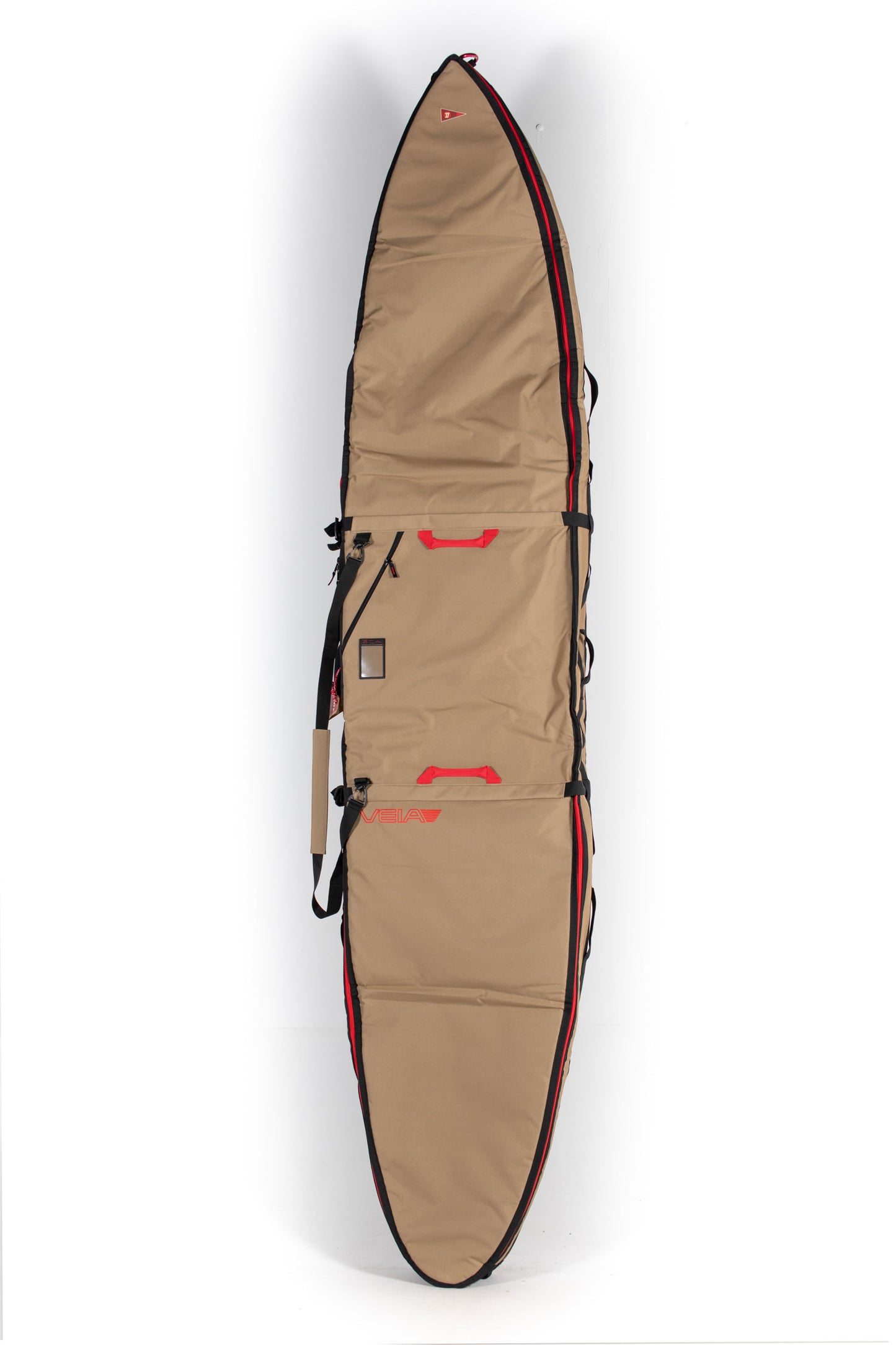 Built for serious travel days, the JJF Gun Day Bag keeps your big-wave boards protected from door to shore. Crafted in durable canvas with reinforced handles, red zippers, and heavy padding for maximum security on the road. Designed by John John Florence and Veia for performance surfers who live for the chase.