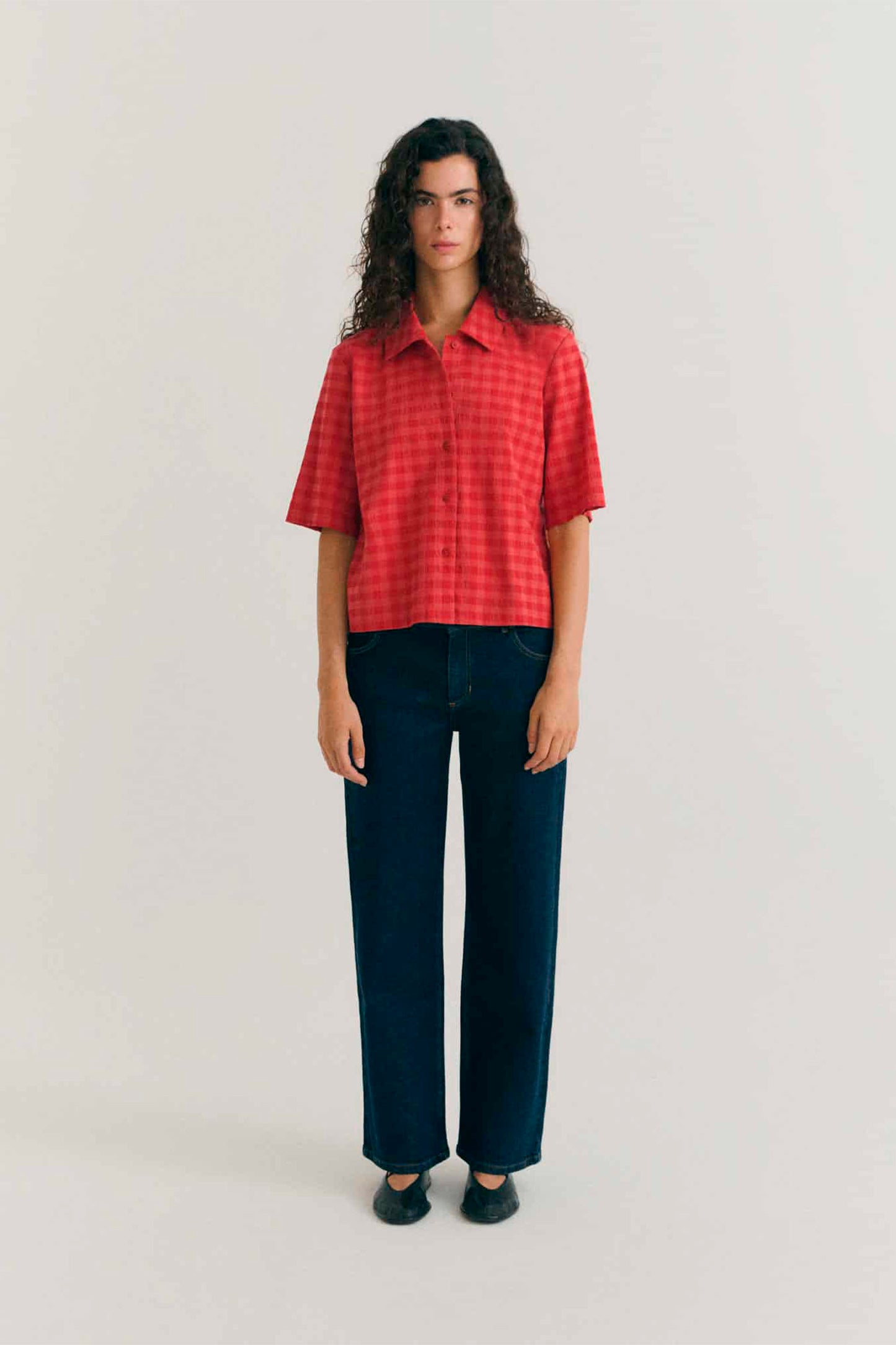THINKING MU - ANE BLOUSE - RED CHECKS