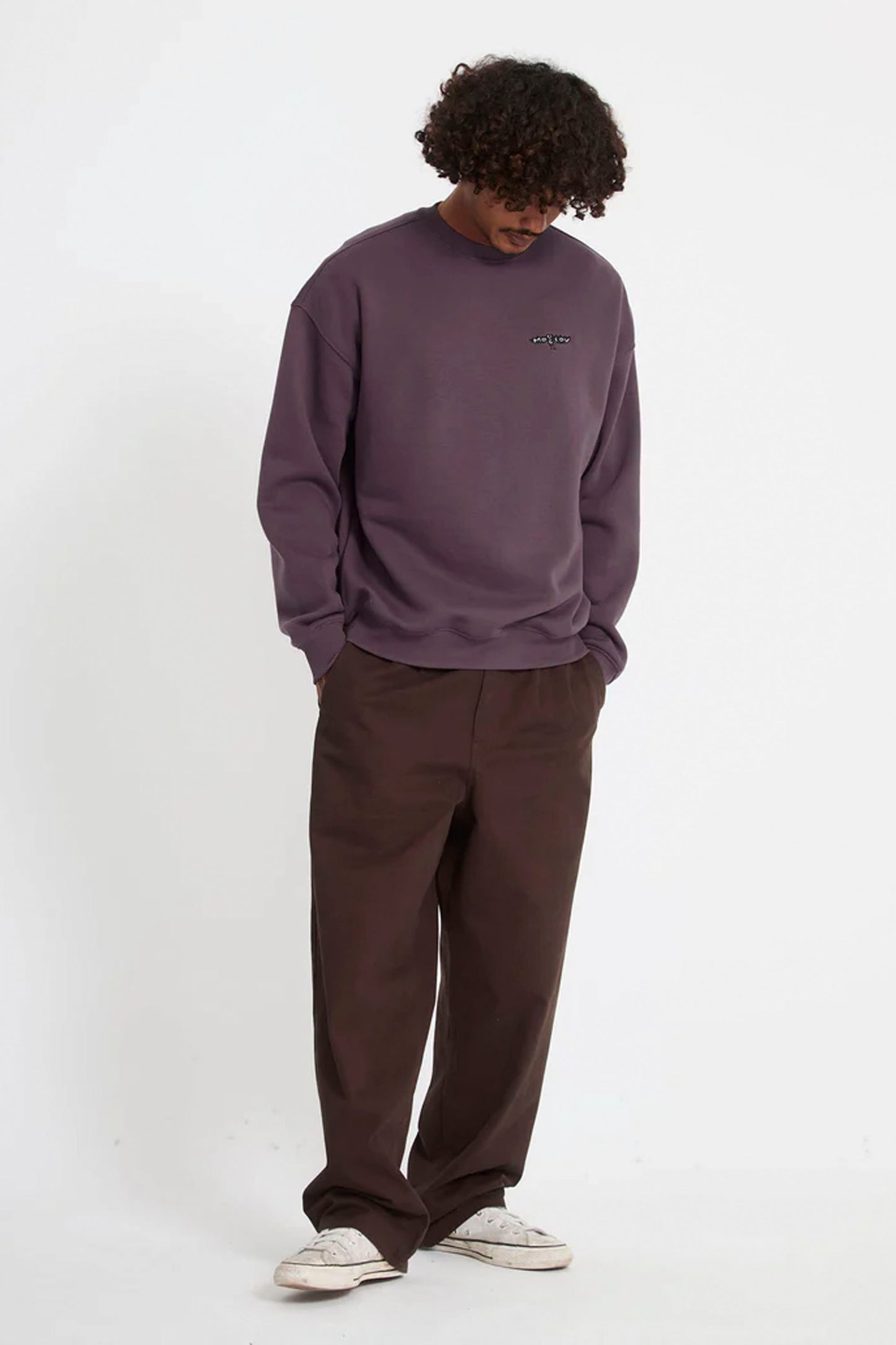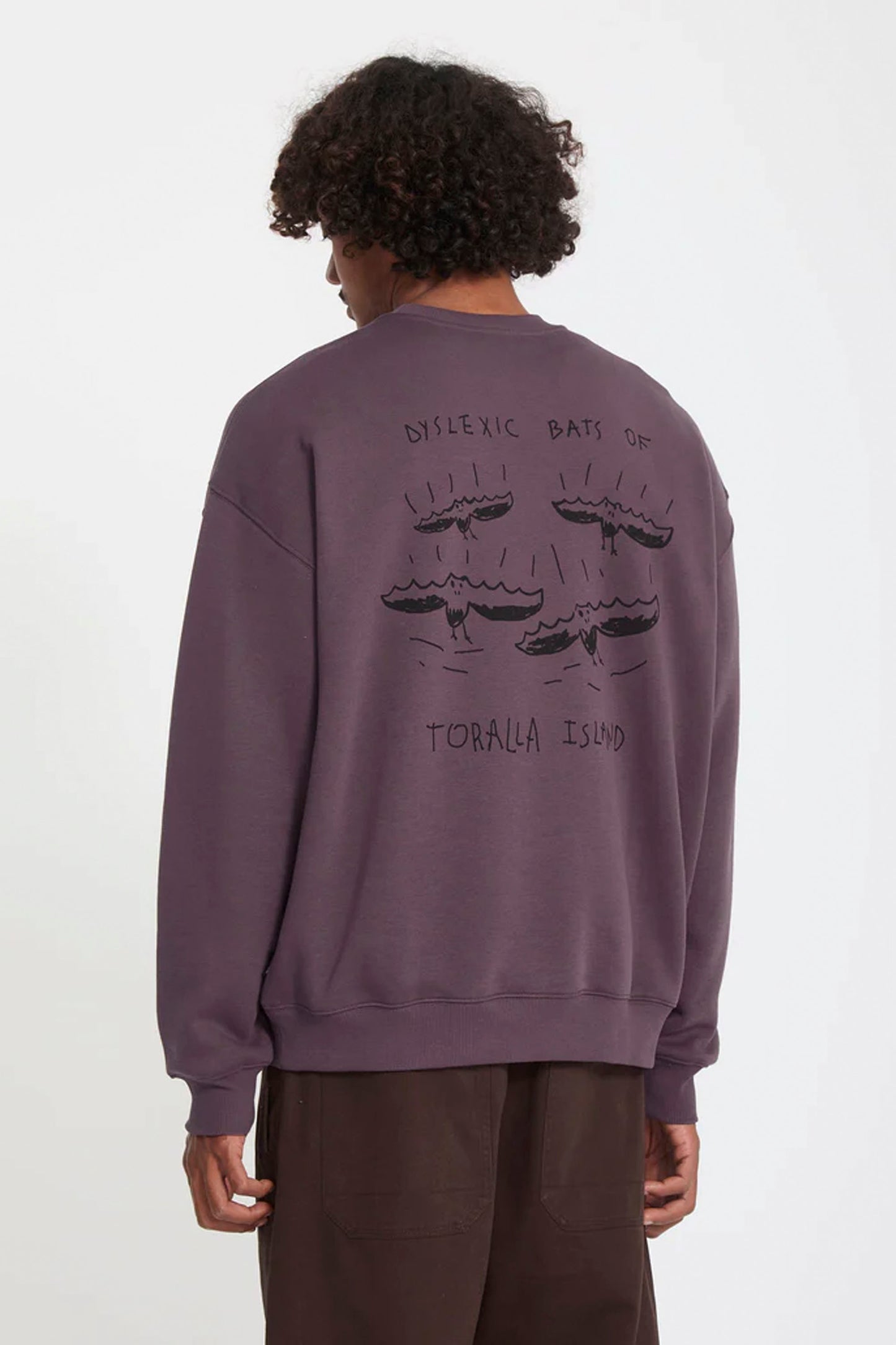 This oversized fleece crewneck showcases exclusive Gony Zubizarreta artwork with embroidery on the front and screen print on the back.
