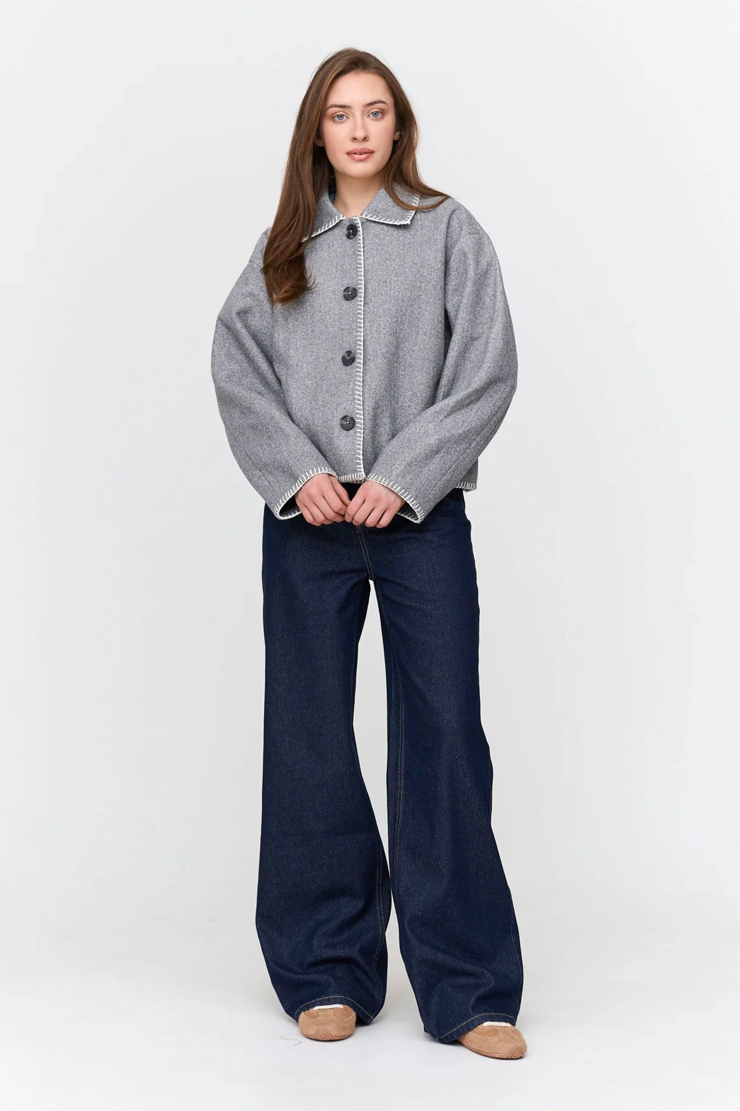 Tailored yet relaxed, this jacket adds clean structure and subtle warmth to your outfit — perfect for layering through chilly city or coastal days.