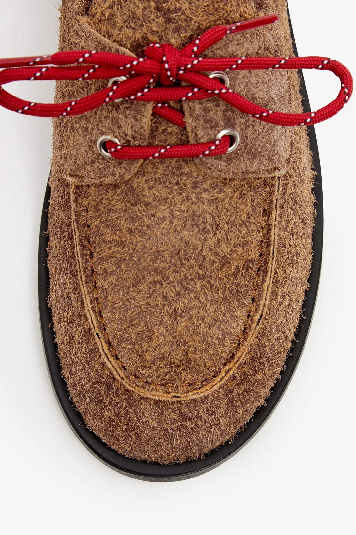 A flat boat shoe handcrafted in Portugal from soft, natural pull leather. Clean lines update a classic silhouette, combining elegance and functionality in a lightweight, versatile design. Laced detailing and artisan stitching on the vamp add character and authenticity, while flexible construction ensures comfort with every step.
