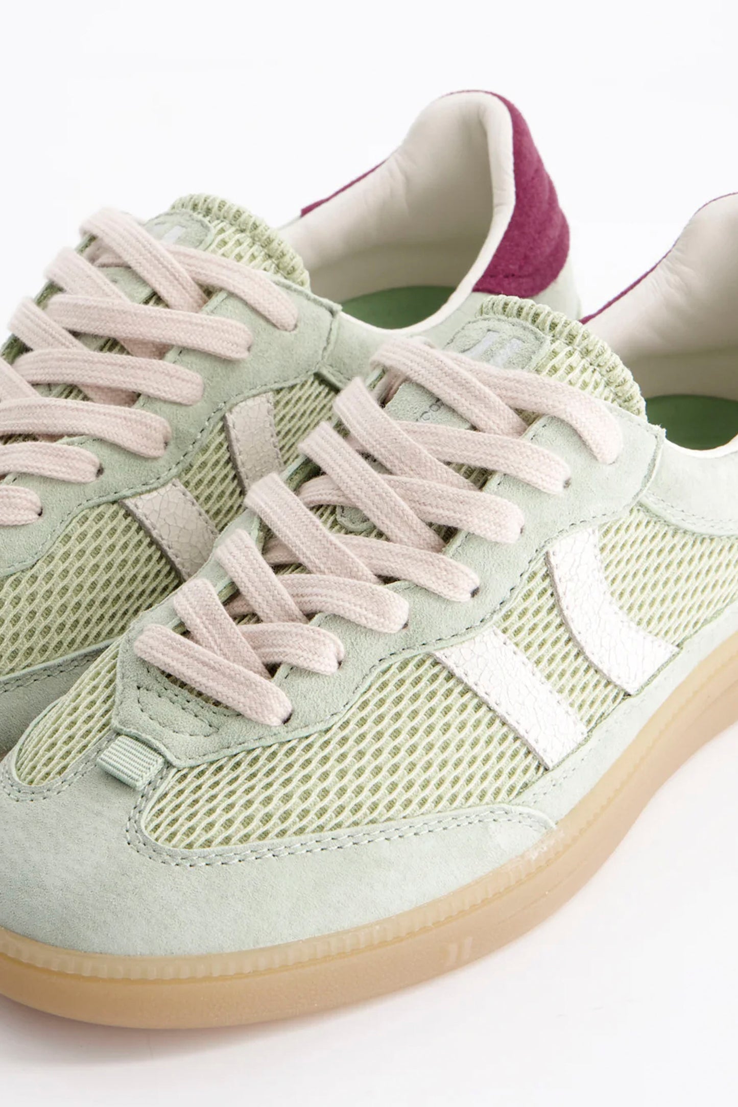 Embrace the season with this mint-toned sneaker that brings a breath of fresh air to your footwear rotation. Luxe comfort meets playful color, making every step feel light and effortless.