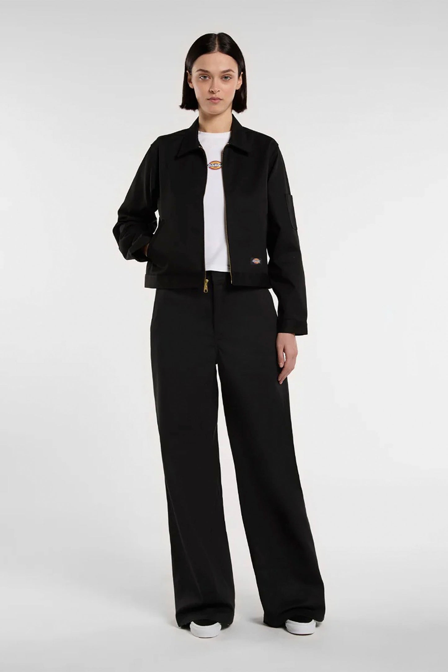 A timeless icon reimagined with a flattering cropped cut. Originally designed by General Dwight D. Eisenhower, this unlined jacket brings military-inspired utility to your everyday wardrobe with zip closure, diagonal ribbed pockets, and adjustable waist buttons for a personalized fit.
